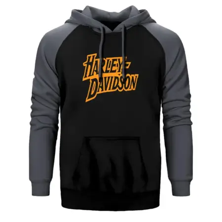 • Harley Vintage Logo Hoodie, Double Color Raglan Sleeve Gray Sweatshirt