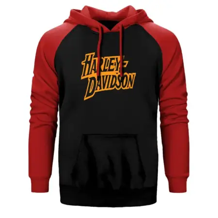 • Harley Vintage Logo Hoodie, Double Color Raglan Sleeve Red Sweatshirt