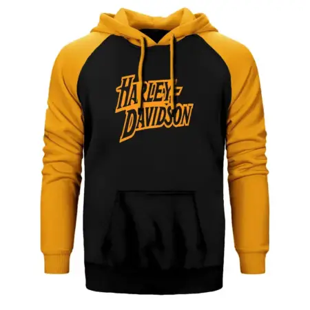 • Harley Vintage Logo Hoodie, Double Color Raglan Sleeve Yellow Sweatshirt