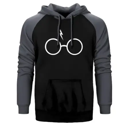 • Harry Potter Glass Hoodie, Double Color Raglan Sleeve Gray Sweatshirt