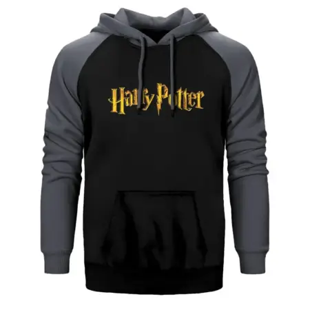 • Harry Potter Logo Hoodie, Double Color Raglan Sleeve Gray Sweatshirt