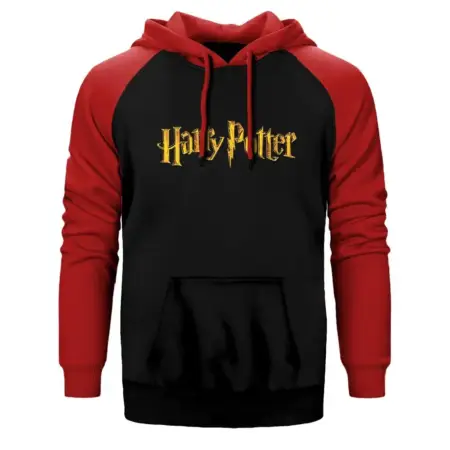 • Harry Potter Logo Hoodie, Double Color Raglan Sleeve Red Sweatshirt