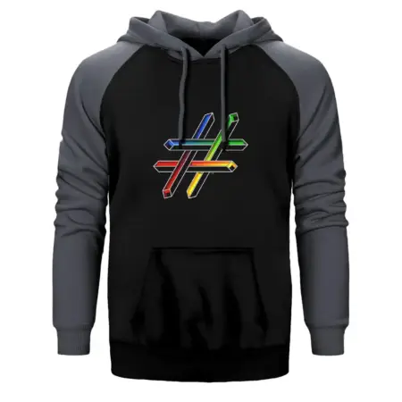 • Hashtag Hoodie, Double Color Raglan Sleeve Gray Sweatshirt