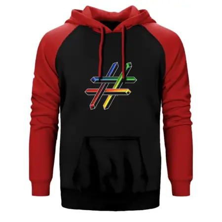 • Hashtag Hoodie, Double Color Raglan Sleeve Red Sweatshirt