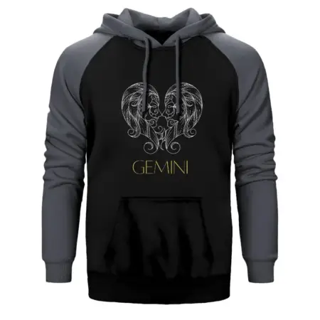 • Gemini Zodiac Retro Hoodie, Double Color Raglan Sleeve Gray Sweatshirt