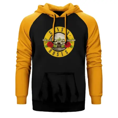 • Guns n Roses Hoodie, Double Color Raglan Sleeve Yellow Sweatshirt