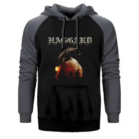 • Haggard Crow Hoodie, Double Color Raglan Sleeve Gray Sweatshirt