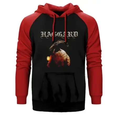 • Haggard Crow Hoodie, Double Color Raglan Sleeve Red Sweatshirt