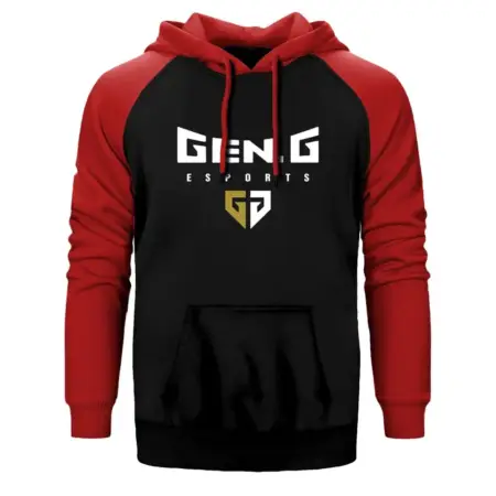 • GEN.G Esports Small Hoodie, Double Color Raglan Sleeve Red Sweatshirt