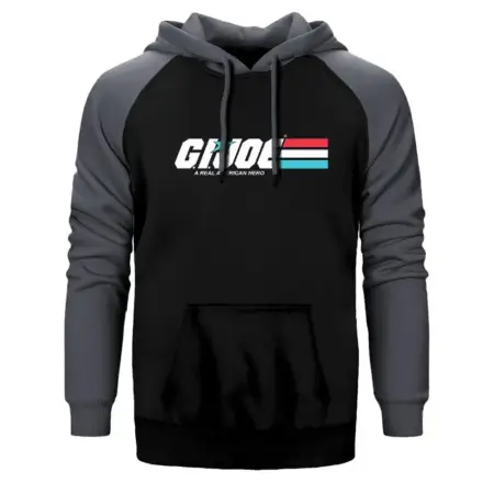 • GI Joe Hoodie, Double Color Raglan Sleeve Gray Sweatshirt