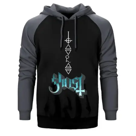 • Ghost Rivals Hoodie, Double Color Raglan Sleeve Gray Sweatshirt