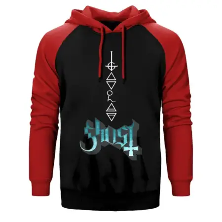 • Ghost Rivals Hoodie, Double Color Raglan Sleeve Red Sweatshirt