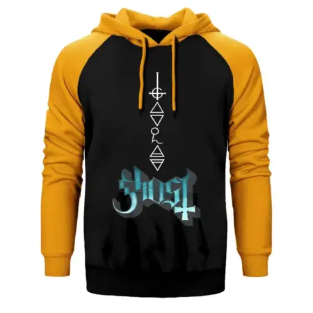 • Ghost Rivals Hoodie, Double Color Raglan Sleeve Yellow Sweatshirt