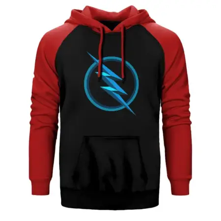 • Flash Logo Hoodie, Double Color Raglan Sleeve Red Sweatshirt
