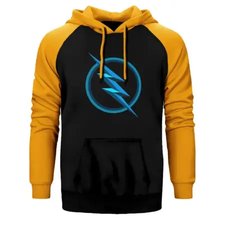 • Flash Logo Hoodie, Double Color Raglan Sleeve Yellow Sweatshirt