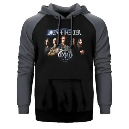 • Dream Theater Group Hoodie, Double Color Raglan Sleeve Grey Sweatshirt