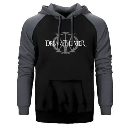 • Dream Theater Logo Hoodie, Double Color Raglan Sleeve Gray Sweatshirt