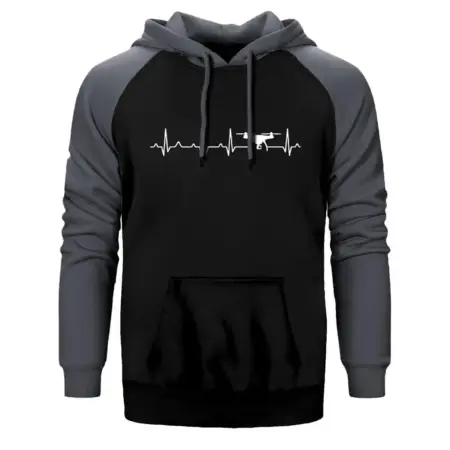 • Drone Heartbeat Hoodie, Double Color Raglan Sleeve Gray Sweatshirt