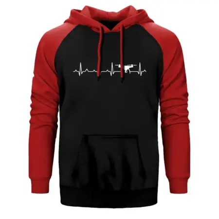 • Drone Heartbeat Hoodie, Double Color Raglan Sleeve Red Sweatshirt