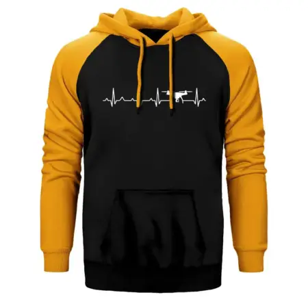• Drone Heartbeat Hoodie, Double Color Raglan Sleeve Yellow Sweatshirt