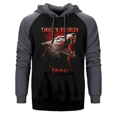 • Disturbed Animal Hoodie, Double Color Raglan Sleeve Gray Sweatshirt
