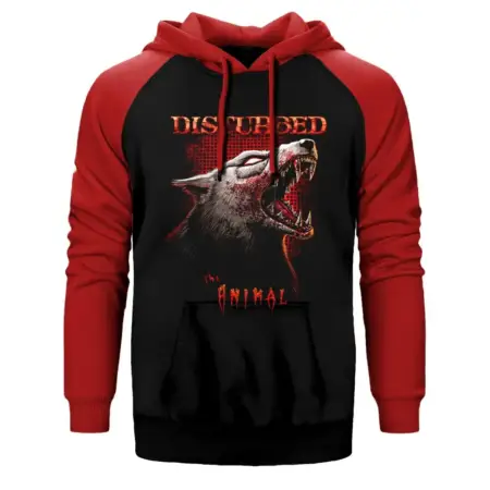 • Disturbed Animal Hoodie, Double Color Raglan Sleeve Red Sweatshirt