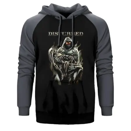 • Disturbed Immortalized Hoodie, Double Color Raglan Sleeve Gray Sweatshirt