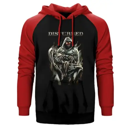 • Disturbed Immortalized Hoodie, Double Color Raglan Sleeve Red Sweatshirt