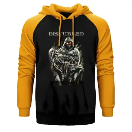 • Disturbed Immortalized Hoodie, Double Color Raglan Sleeve Yellow Sweatshirt