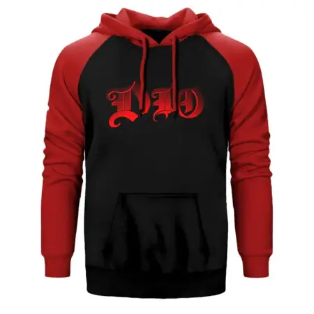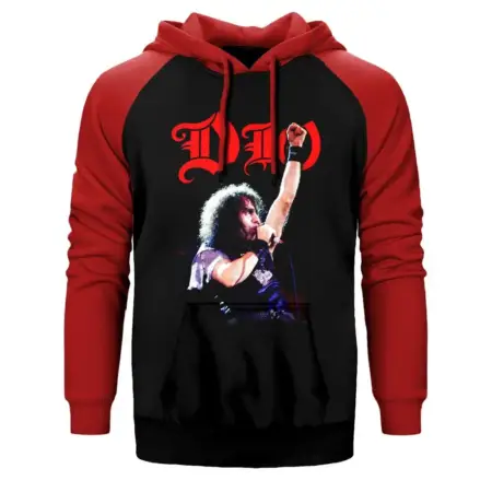 • Dio We Rock Hoodie, Double Color Raglan Sleeve Red Sweatshirt