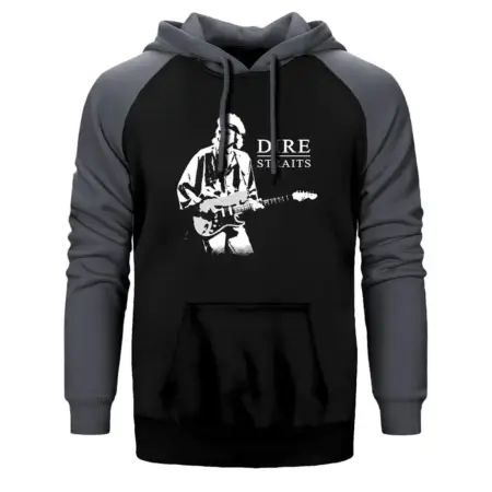 • Dire Straits Concert Hoodie, Double Color Raglan Sleeve Gray Sweatshirt
