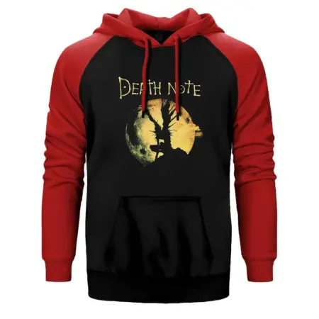 • Death Note Moon Hoodie, Double Color Raglan Sleeve Red Sweatshirt