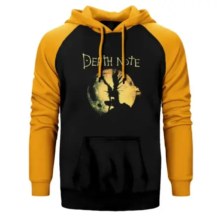 • Death Note Moon Hoodie, Double Color Raglan Sleeve Yellow Sweatshirt