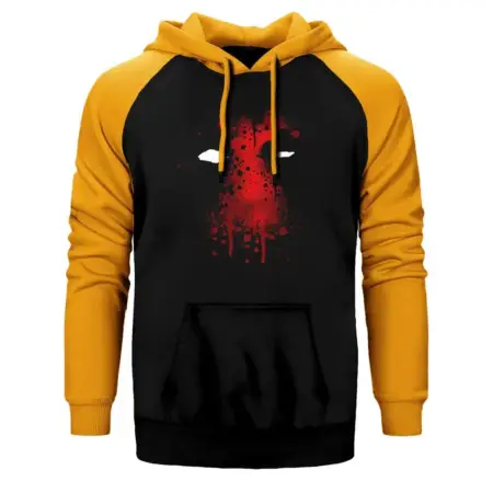 • Deadpool Face Hoodie, Double Color Raglan Sleeve Yellow Sweatshirt
