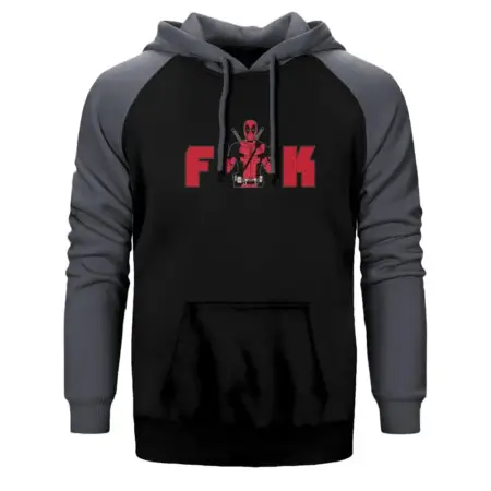 • Deadpool Fuk Hoodie, Double Color Raglan Sleeve Gray Sweatshirt