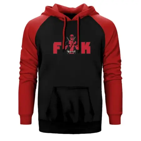 • Deadpool Fuk Hoodie, Double Color Raglan Sleeve Red Sweatshirt