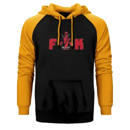 • Deadpool Fuk Hoodie, Double Color Raglan Sleeve Yellow Sweatshirt
