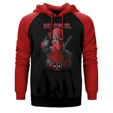 • Deadpool Great Hoodie, Double Color Raglan Sleeve Red Sweatshirt