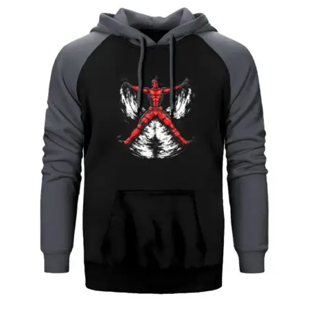 • Deadpool Blood Angel Hoodie, Double Color Raglan Sleeve Gray Sweatshirt