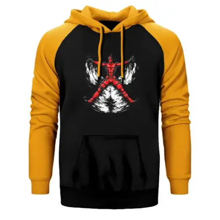 • Deadpool Blood Angel Hoodie, Double Color Raglan Sleeve Yellow Sweatshirt