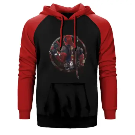 • Deadpool Dual Sword Hoodie, Double Color Raglan Sleeve Red Sweatshirt