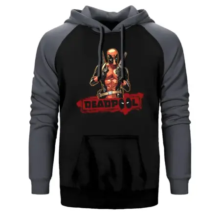 • Deadpool Dual Sword Hoodie, Double Color Raglan Sleeve Gray Sweatshirt