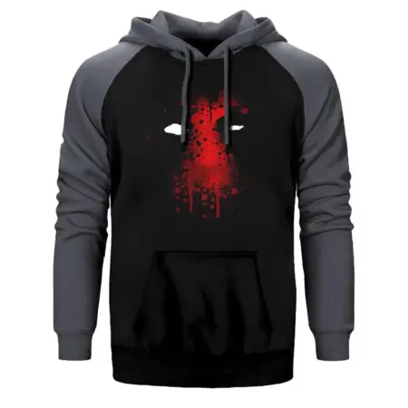 • Deadpool Face Hoodie, Double Color Raglan Sleeve Red Sweatshirt