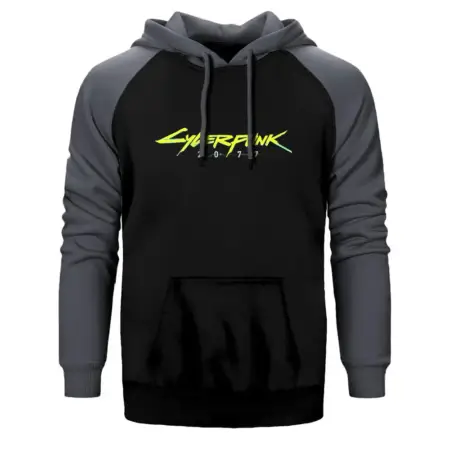 • Cyberpunk 2077 Logo Hoodie, Double Color Raglan Sleeve Grey Sweatshirt