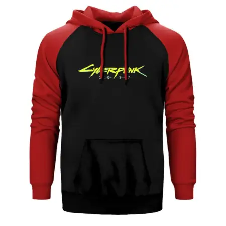 • Cyberpunk 2077 Logo Hoodie, Double Color Raglan Sleeve Red Sweatshirt