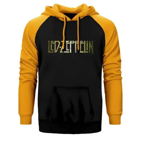 • Led Zeppelin Wall Hoodie, Double Color Raglan Sleeve Yellow Sweatshirt
