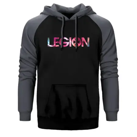 • Legion Colors Logo Hoodie, Double Color Raglan Sleeve Gray Sweatshirt