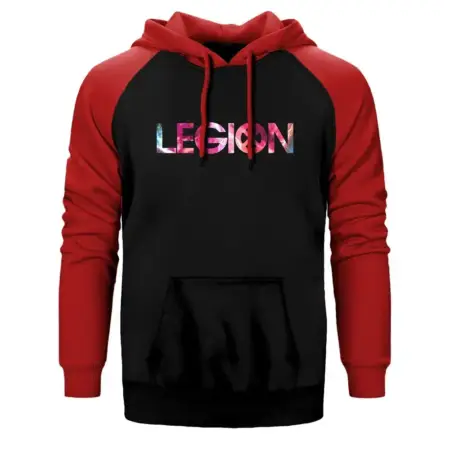 • Legion Logo Hoodie, Double Color Raglan Sleeve Red Sweatshirt