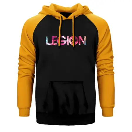 • Legion Logo Hoodie, Double Color Raglan Sleeve Yellow Sweatshirt