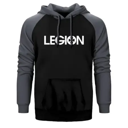 • Legion Logo Hoodie, Double Color Raglan Sleeve Gray Sweatshirt